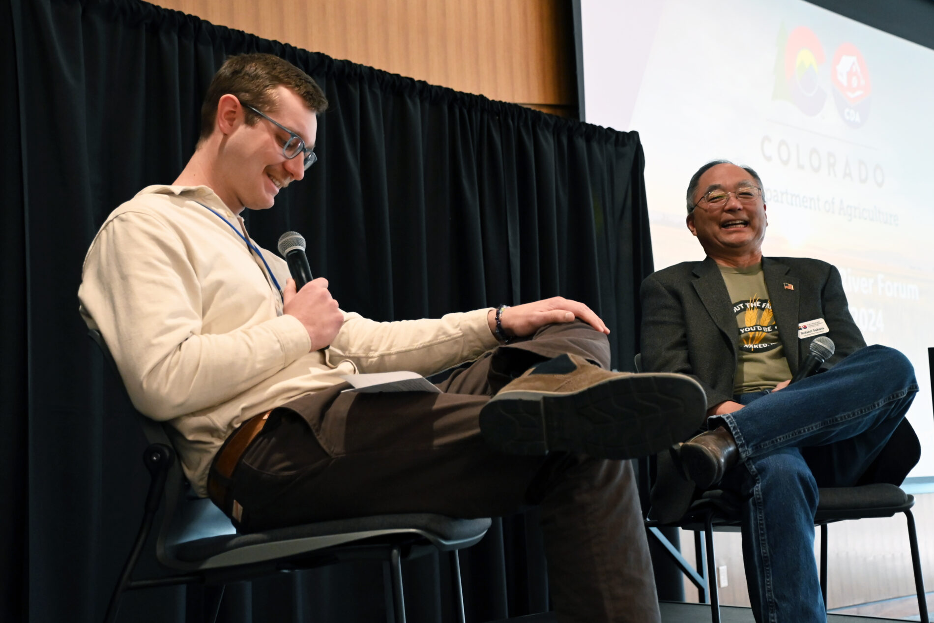 Sabrina Stoker, Executive Director of the Cache la Poudre River National Heritage Area and Zac Thode, Moderator and Owner of Lehi Ranch at The Forks
